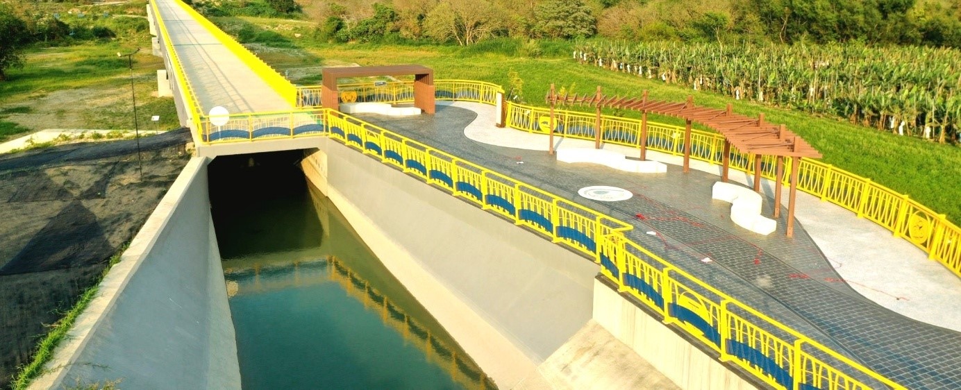 Magistrate Weng noted that agriculture in Chiayi depends heavily on a reliable irrigation network. The upgraded Puzi River Aqueduct represents a dual enhancement in both disaster prevention and water supply capacity, which is essential for farming and food security. He added, "Water for irrigation signifies wealth because it facilitates better crop cultivation. Therefore, agricultural water management infrastructure is exceptionally vital for Taiwan." Reflecting on his visits to Central America, Magistrate Weng shared that local officials highly praised Taiwan’s well established agricultural water management systems, acknowledging them as the result of decades of dedicated effort. In addition to upgrading the aqueduct, this project also included the construction of a cycling path and a scenic rest platform, integrating landscape, recreation, culture, and environmental elements.