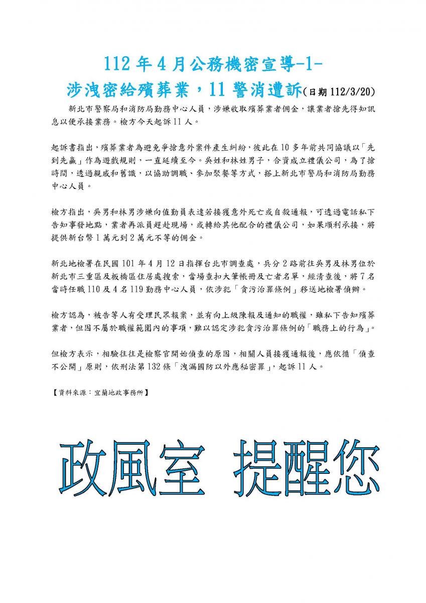 公務機密宣導-涉洩密給殯葬業,11警消遭訴