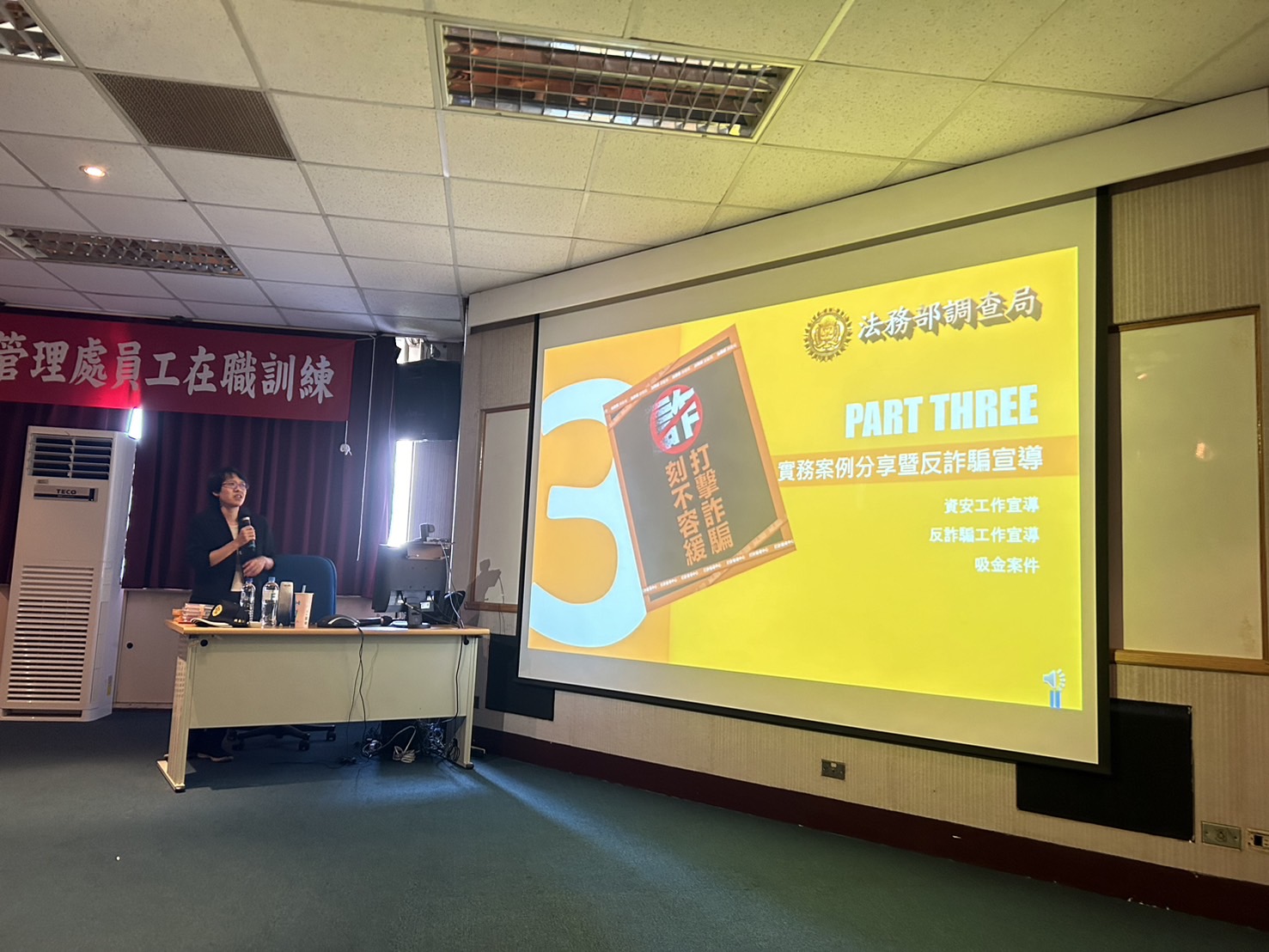 近來境外勢力滲透及資安外洩事件層出不窮,南投管理處於8月12及13日分兩梯次辦理「公務機密及機關安全維護」專題演講,邀請法務部調查局臺中市調處林易儒調查官擔任講師。指導同仁瀏覽網路需慎防假帳號、假粉專以及假連結,對網路消息需加以判斷,避免因不實消息落入認知作戰的陷阱,林調查官也引用數則判決加深同仁印象,強調資安即國安,機關機密安全需要大家共同守護。